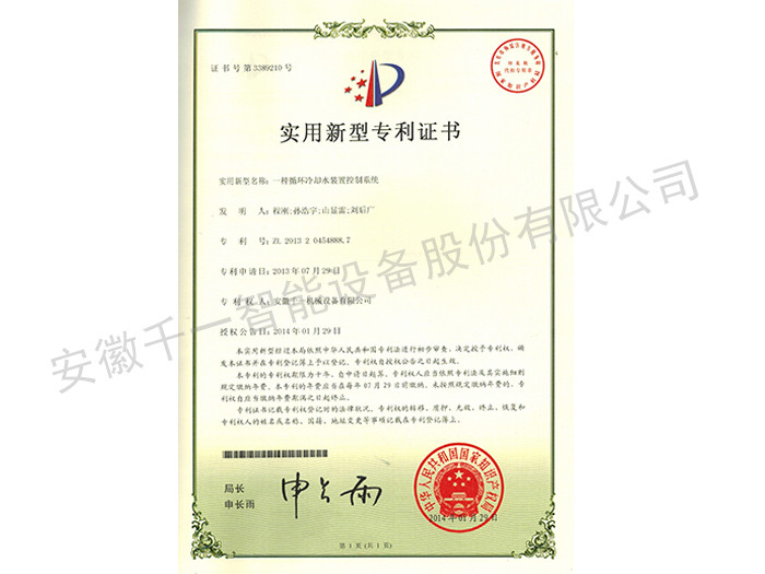 一種循環(huán)冷卻水裝置控制系統(tǒng)證書